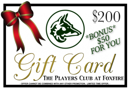 $300 Gift Card available for use for all goods and services at The Players Club at Foxfire. Please allow 2-3 Business Days to receive your order via email.